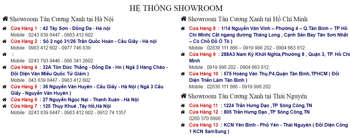 Danh Sách Các Showroom Tân Cương Xanh Tại Thái Nguyên – Hà Nội – TP Hồ Chí Minh